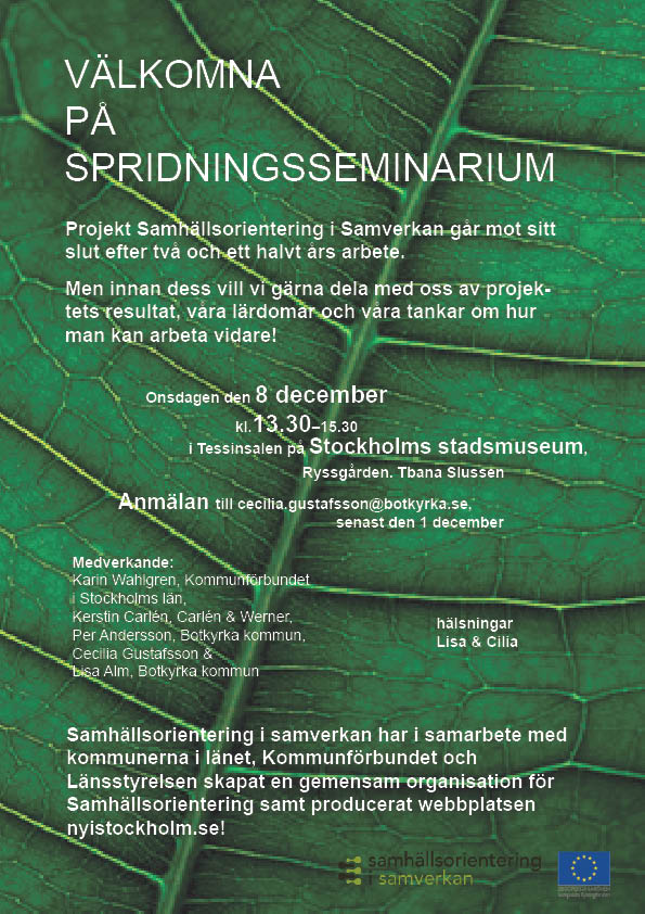 Projekt Samhällsorienteringen i samverkan går mot sitt slut, men innan dess vill vi bjuda in alla intresserade till ett spridningsseminarium! Ladda ner inbjudan här!